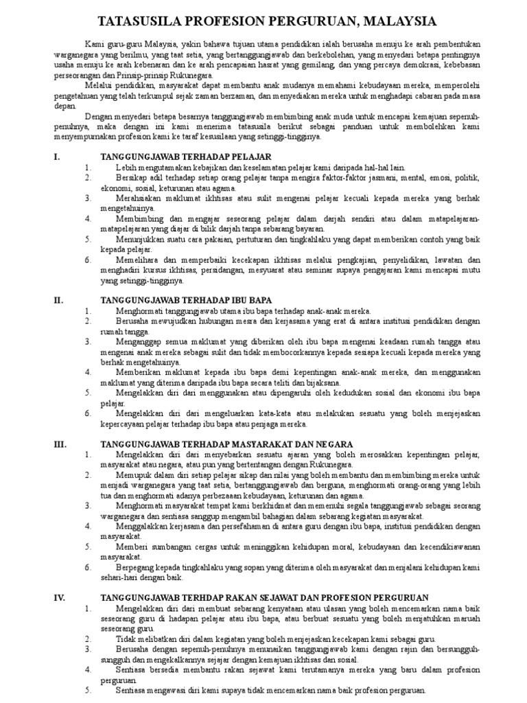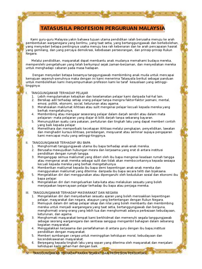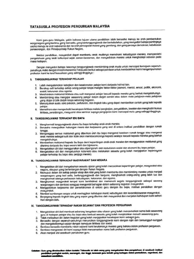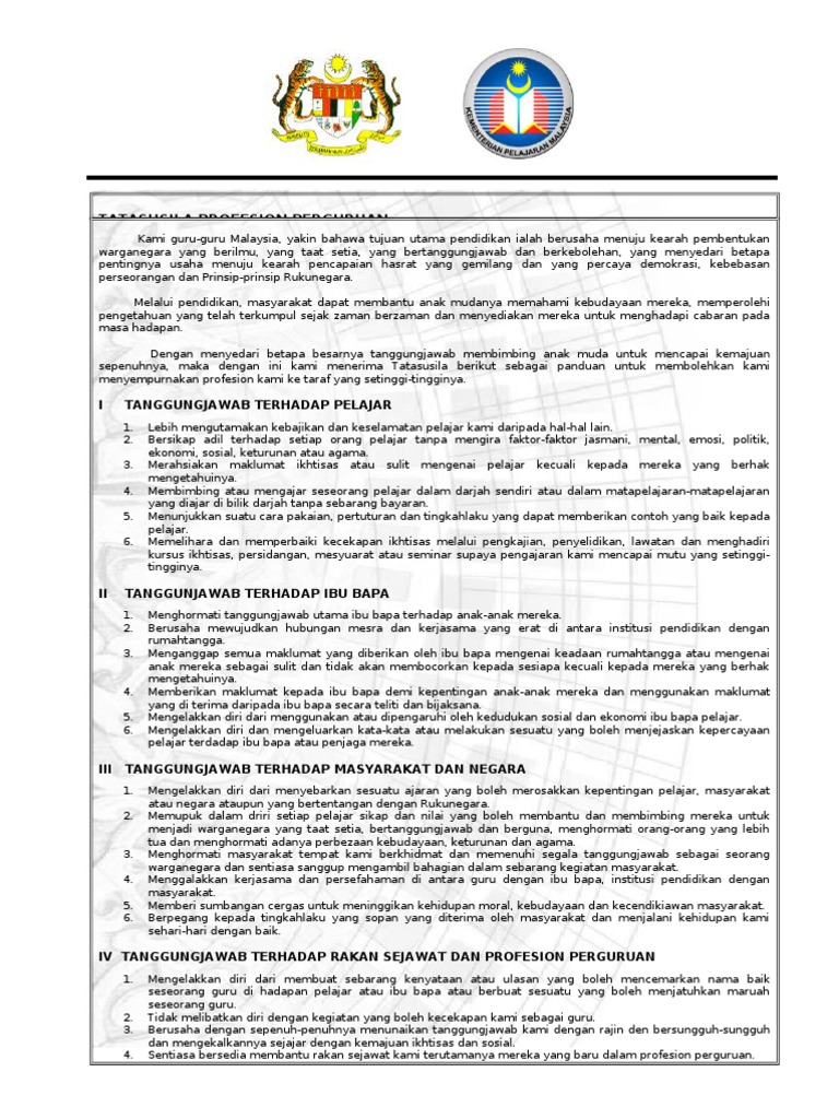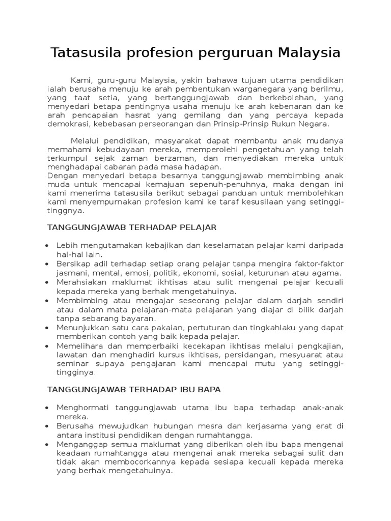 Tata Susila Profesion Perguruan Malaysia / Naib presiden umno, datuk dr ahmad zahid hamidi yakin perhimpunan agung umno kali ini akan memberi kelainan berbanding tahun sebelum ini.. One response to profesion perguruan. Profesion perguruan hari ini menghadapi isu pelaksanaan program tak terancang secara berleluasa sehinggakan profesion ini sudah menjadi tidak menarik lagi kepada para guru. Ada guru yang melanggar tata susila profesion itu, antaranya penyelewengan wang, gangguan seksual, terlibat dengan najis dadah dan juga perbuatan jenayah. Sesuai kamus besar bahasa indonesia disebutkan bahwa tata berarti aturan (biasanya dipakai dalam kata kata susila berasal dari urat kata sila, mendapat pengater su yang berarti baik. Sentiasa bersedia membantu rakan sejawat guru terutamanya mereka yang baru menceburkan diri dalam profesion perguruan.